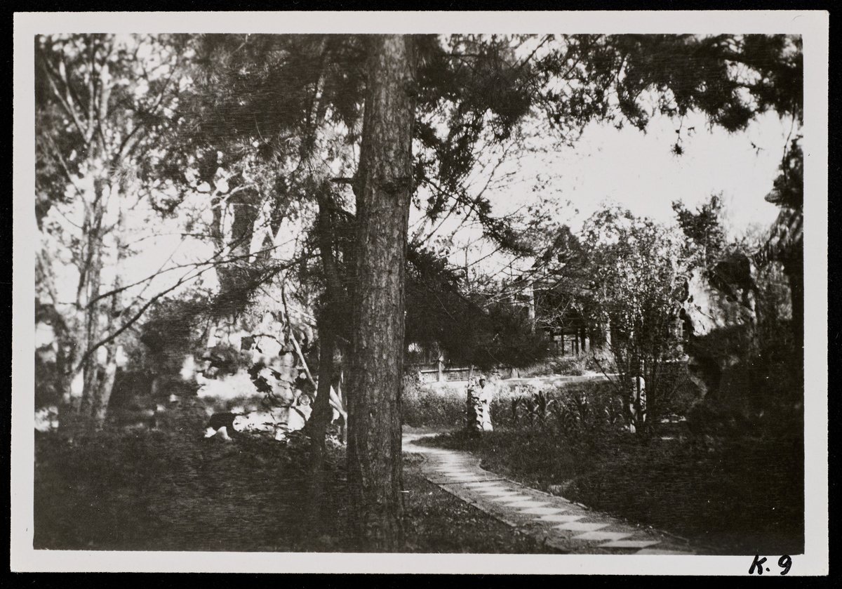 A diamond-patterned paved path between trees and shrubs, Prince Pu-zhu's garden