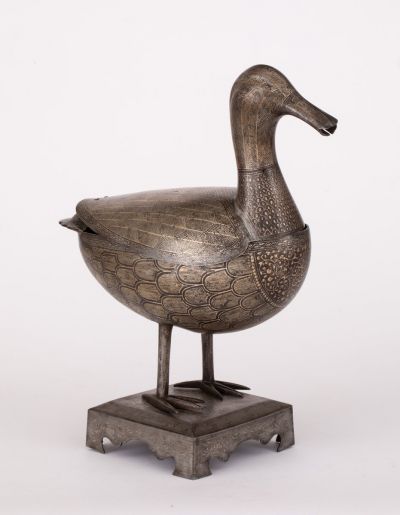 The body is covered with a dense, tawny plant decoration. Arabesque in the middle, Persian inscription in the middle. herringbone pattern on the head.