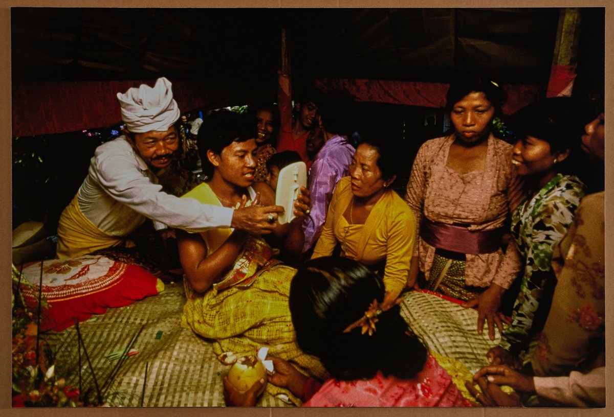 A young person from a non-privileged caste marvels at their newly filed teeth and new identity, now responsible as an adult for controlling animalistic and wild instincts.