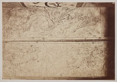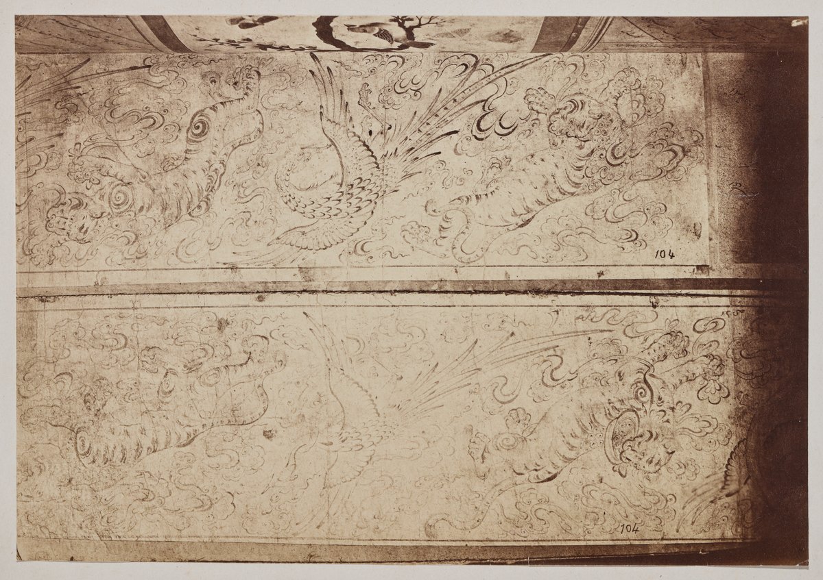 Album page from the Topkapi Palace Museum (Topkapı Sarayı) Library: Tigers and phoenixes, pen drawing in two fields (15th century)