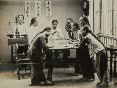 | Signed: | Below the photo: Dezső Bozóky's handwriting: At the Fan-tan gambling. |