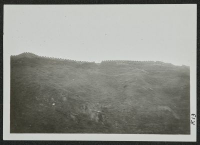 Bastion wall shots over the barren steep hills, Nankou Pass, Beijing area, May 31, 1936