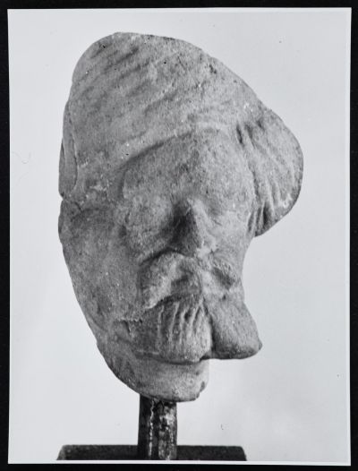 A fragment of a head, with a beard opening in two directions and a folded head.