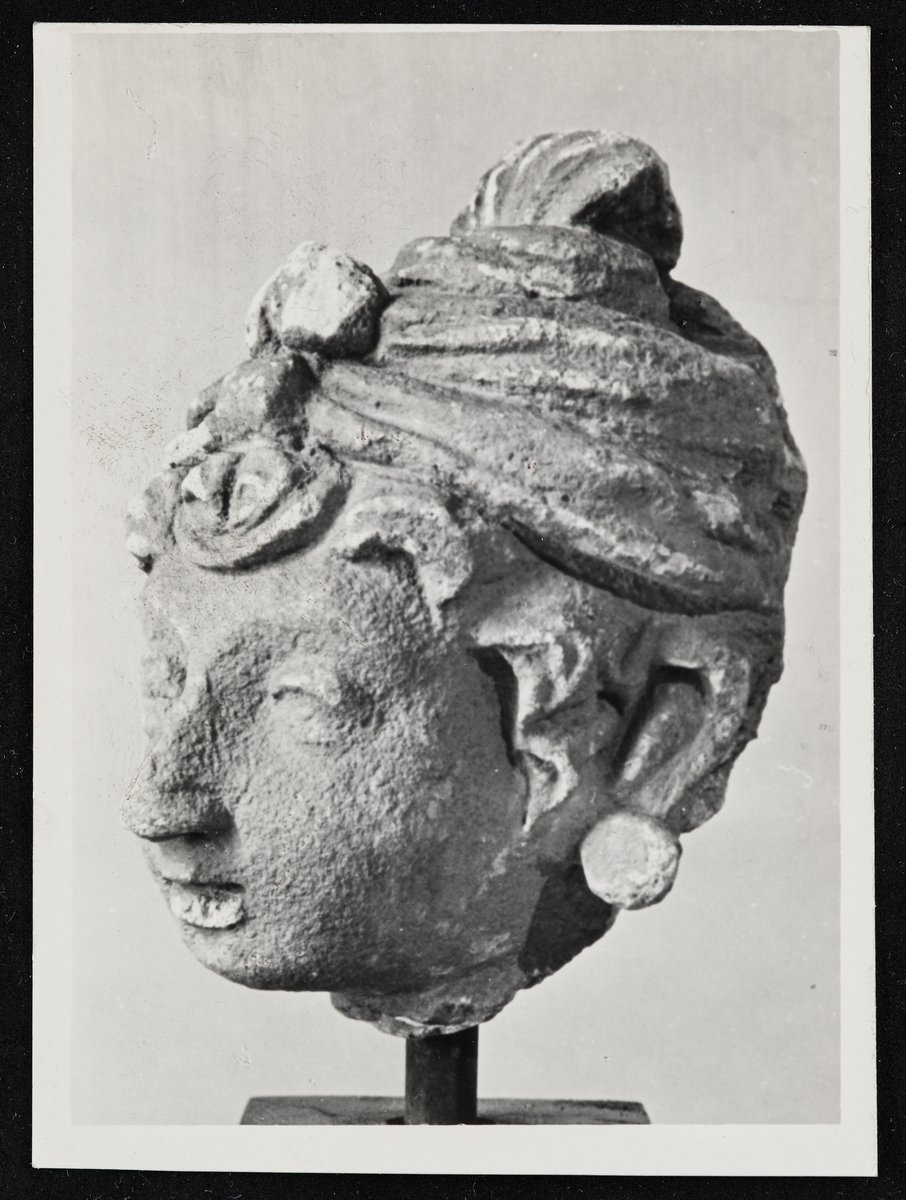 The inv. Head No. 50.56.1 is fragmentary, belonging to the Gandhara material of the Indian Collection. A gift from Imre Schwaiger. There are traces of glue on the back wall of the black and white photo, it could probably have been glued on earlier.