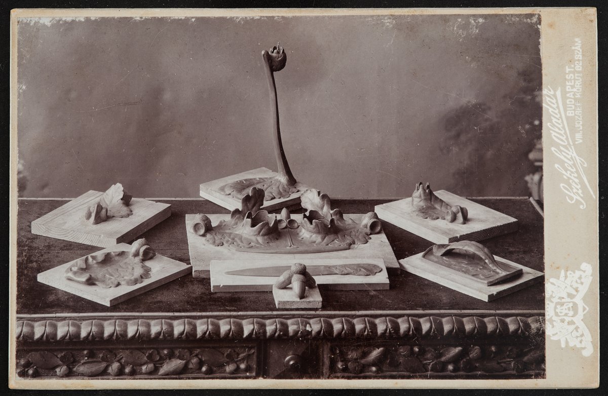 Aladár Székely : Writing set, 1904. Made of oak leaf and acorn moulds.