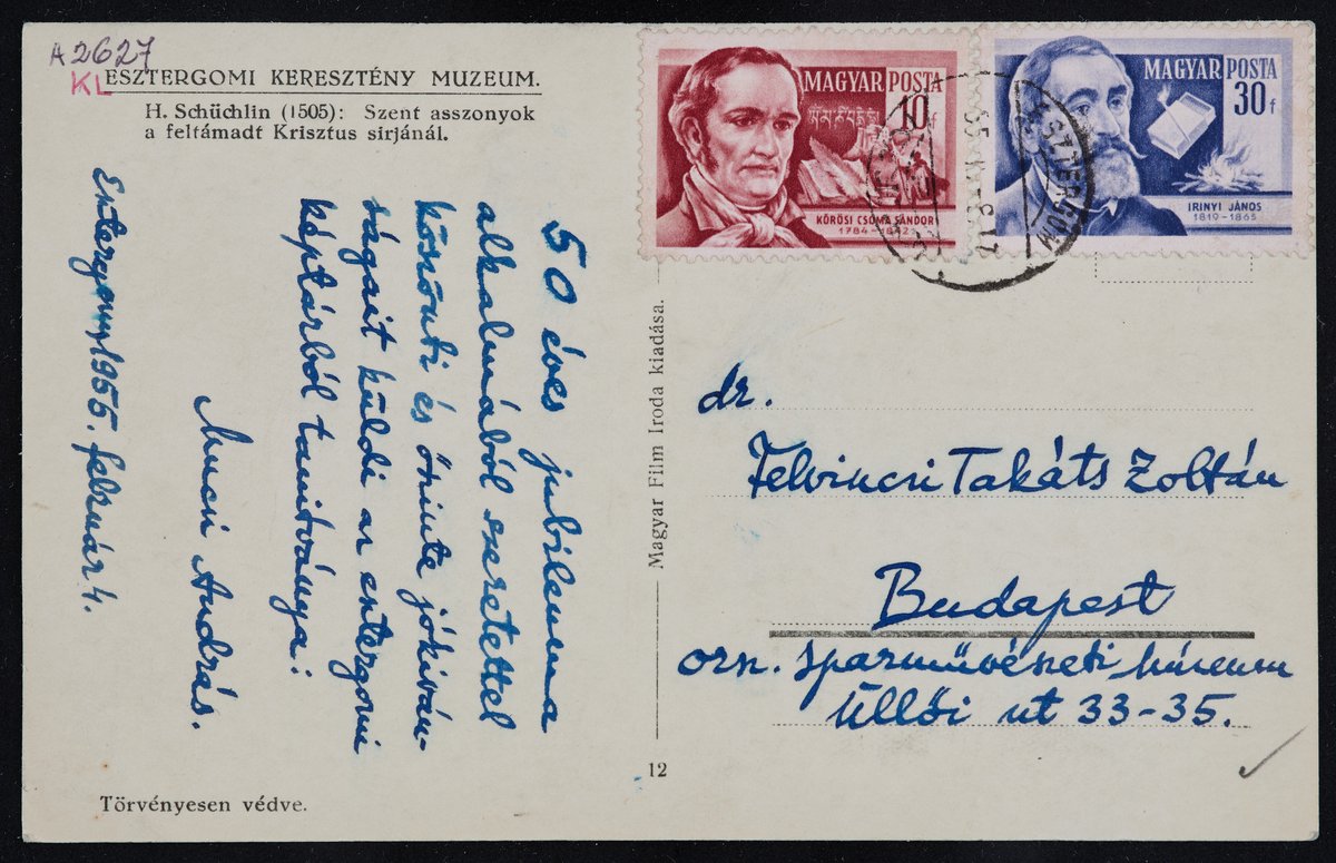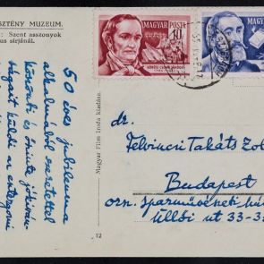 Black-and-white postcard from András Mucsi to Zoltán Felvinczi Takács from Esztergom