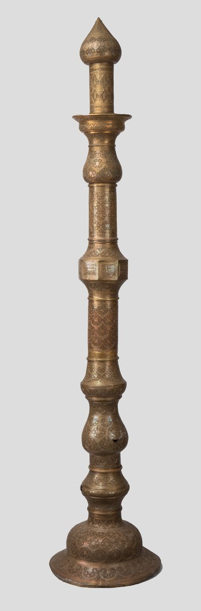 Repetitive and only partially legible Arabic inscription.Floral ornaments dominate the decorative scheme; the two uppermost pieces are decorated with engraved figures of dancers, drinkers, demons, birds and hares