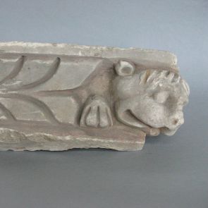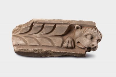 The cornice has a leaf design with the feet and head of a lion, which formed the corner of the cornice. Decorative cornice from a Buddhist stupa.