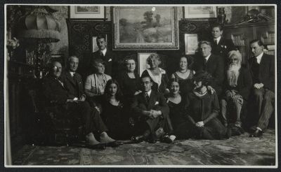 Sitting on the chair from left to right:?, Raoul, Ella, Blanka, Baktay's mother, Marie Antoinette, Baktay Ervin, Umrao S. Sher-Gil,?