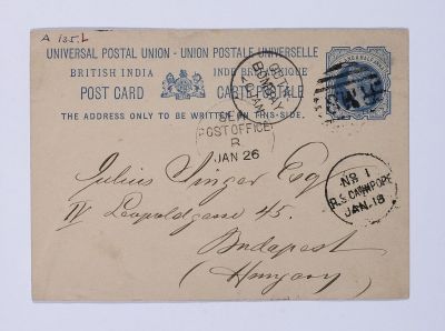 Ferenc Hopp's postcard sent from his first round the world trip to Gyula Singer, from Cownpore (Kanpur)