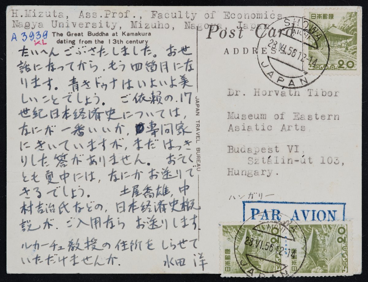 Greeting card in Japanese from Professor H. Mizuta to Zoltán Felvinczi Takács from Nagoya