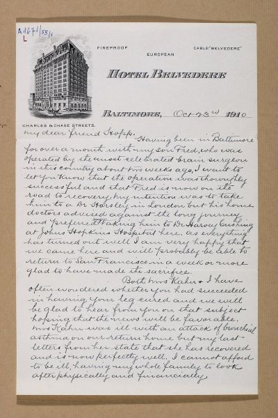 His son Fred had an operation, his wife has asthma. He no longer writes about his plans to travel to the East. Letters written to Ferenc Hopp by his acquaintances are deposited under inv. nos. HFA_A.1671.1-94.
