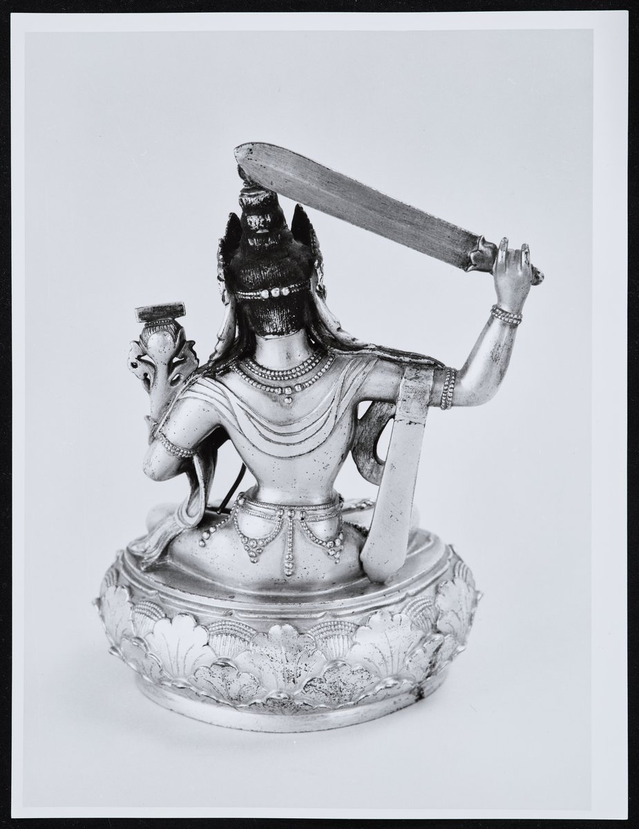 Manjushri Bodhisattva, back of the statue (inv. no. 79.43.1) - black and white photo
