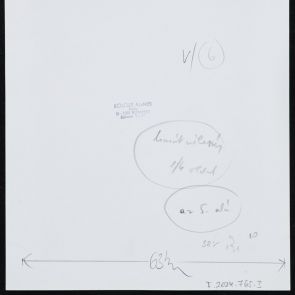 The inv. Black and white photo of the back of the statue depicting Manjushri Bodhisattva 79.43.1, preserved in the Mongolian Collection. Description of the artifact: Manjushri Bodhisattva (Mongolian: Manjusiri; Sanskrit: Mañjuśrī; Tibetan: 'jam dpal) holds a lotus flower and that sword in his hand, going to cut off ignorance. He wears princely robes and bodhisattva ornaments. He sits on a triangular lotus throne with a convex wall in a meditative posture. The lotus throne is divided into five parts, decorated with upward curved lotus petals and notches. The statue, which shows the characteristics of the style, can be considered the work of either Dzanabadzar himself or his school. It dates back to the 17th and 18th centuries, creator: Öndör Gegén Dzanabadzar Gombodorjin