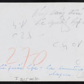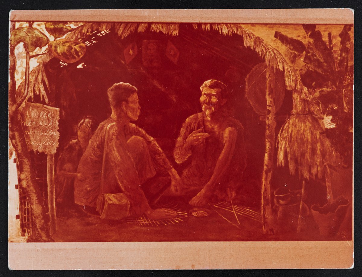 Lê Quoc Loc's (1918-1987) painting "Conversation" (1955) depicts two men talking in a small cabin in the woods, with the Vietnamese flag and a portrait of Ho Chi Minh hanging above their heads. The book on Vietnamese art by photographer Miklós Rév and Imre Patkó was published in 1967 under the title "The Art of Vietnam". (see Inv. No. F. 31.44.2025.)