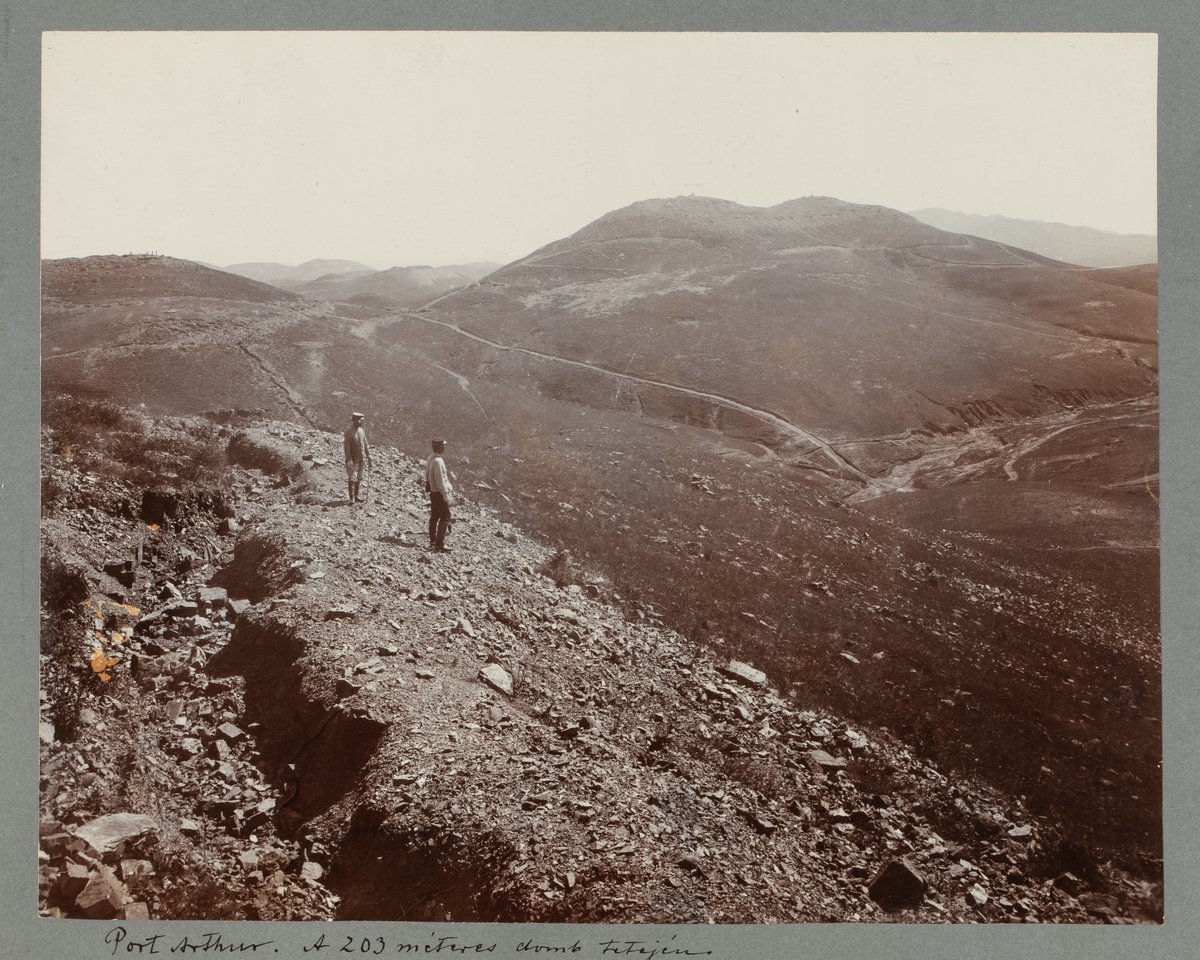 | Signed: | Below the photo: Dezső Bozóky's handwriting: Port Arthur: On top of the 203m hill. |