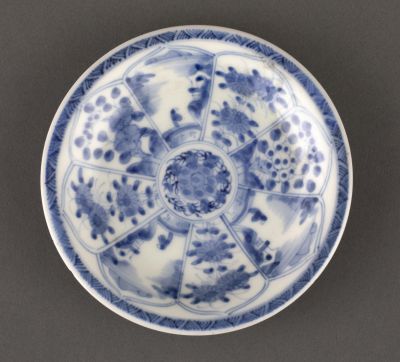 Saucer decorated with landscapes and floral motifs in radially arranged panels