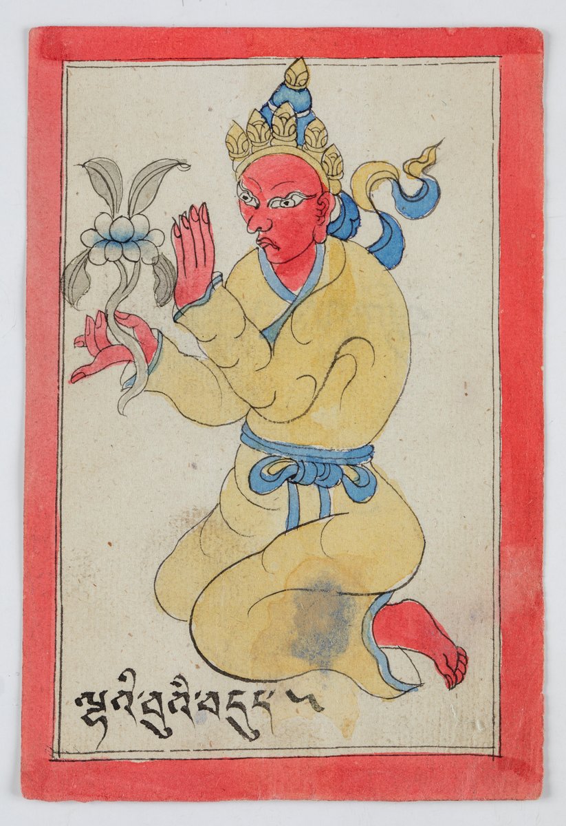 It is one of twenty-three numbered pictures ( HFM_2000.1.1 —2000.23.1), serial number . In the middle of the picture with a red frame, a demon with red body and yellow dress can be sseen.