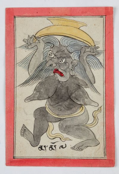 It is one of twenty-three numbered pictures ( HFM_2000.1.1 —2000.23.1), serial number . In the middle of the picture with a red frame, a demon with yellow body can be sseen.