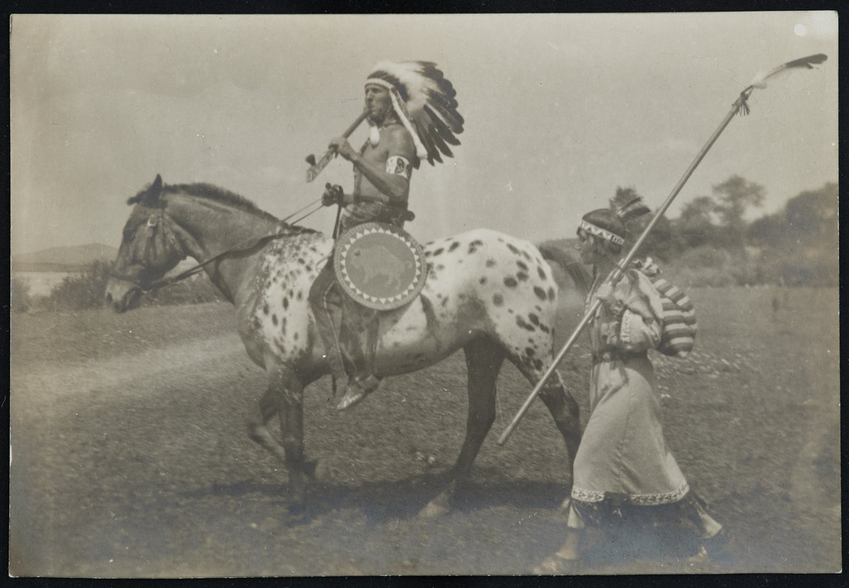 Indian on horseback and his wife.