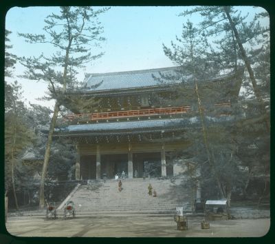 Dezső Bozóky hand-coloured glass diapositive. Dezső Bozóky's travelphoto from Japan. The photograph was purchased by Dezső Bozóky. place of production: Chionin Temple (知恩院), Kyoto