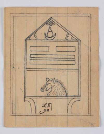 One of a series ( HFM_2001.54.1-2001.68.1 ) depicting demons, with inscription.