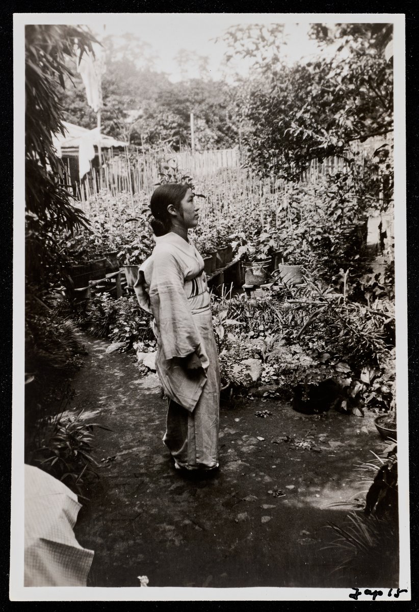 Toki Seiko in the garden of their house, Kamakura