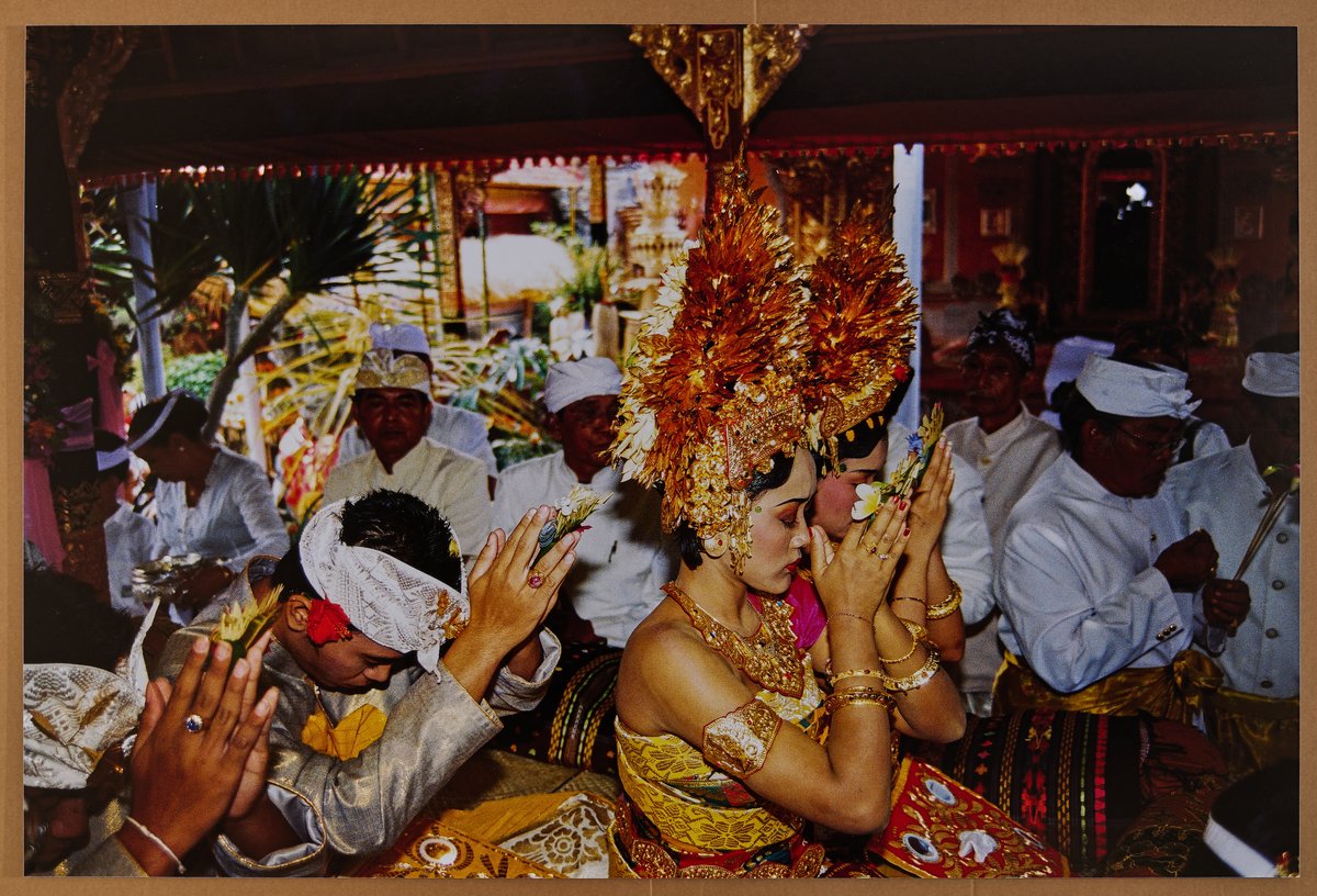 Young people praying before a spiritually risky ceremony, followed by gamelan music and a festive feast. Reproduction by Gill Marais.