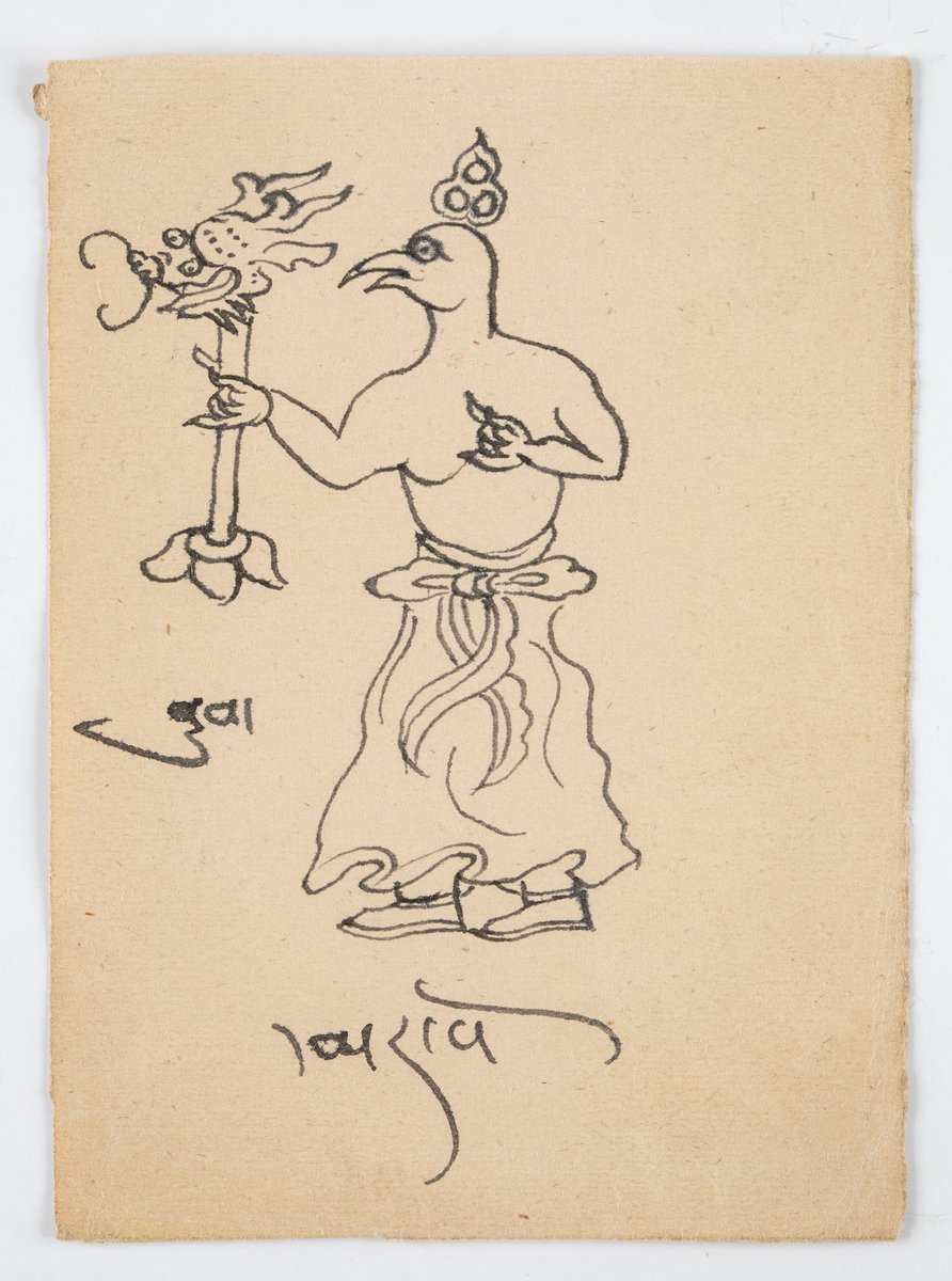 One of a four-part series (2001.4.1-2001.4.4) depicting demons, drawn by ink, with inscription.
