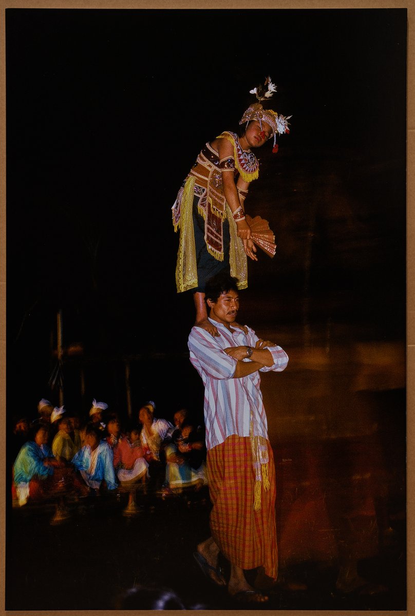 Girls in trance, seized by angelic spirits, seem to float on the shoulders of men. During their strange dance, their eyes remain closed. Reproduction by Gill Marais.