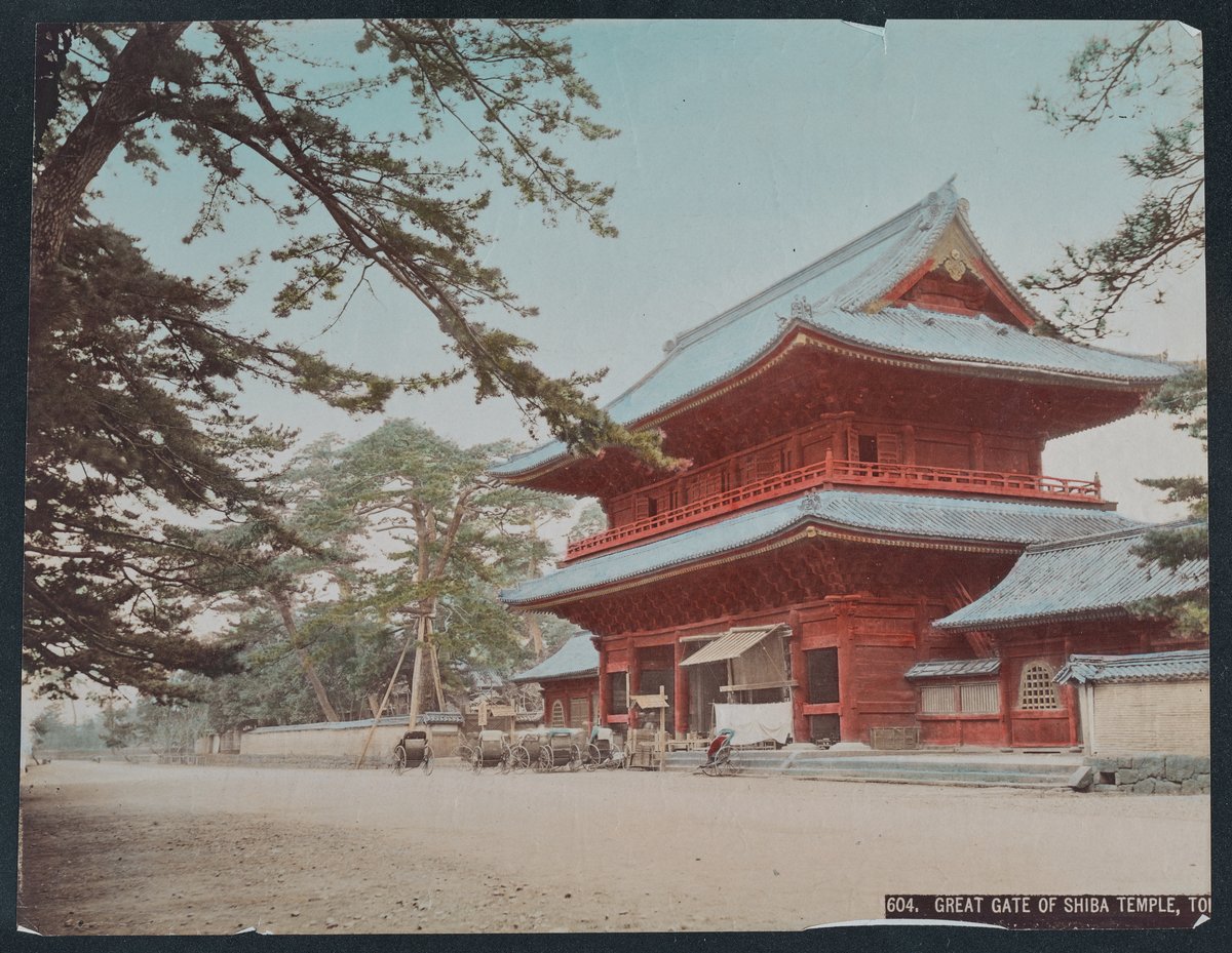 View of Zōjō-ji Temple. Negative reads the following: Great Gate of Shiba Temple.