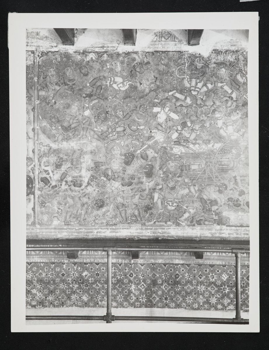 A Rámájana jelenetét ábrázoló falfestmény fekete-fehér fotója