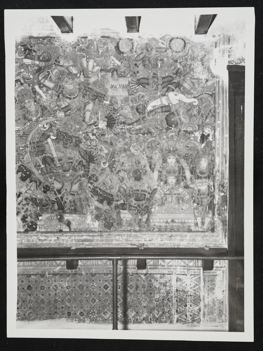A Rámájana jelenetét ábrázoló falfestmény fekete-fehér fotója