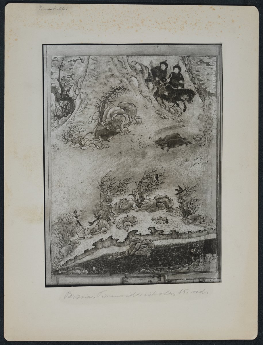 Albumlap a Topkapi Szeráj Múzeum (Topkapı Sarayı) könyvtárából. Téli táj. Miniatúra, Tabriz (Tebriz), 14. század közepe