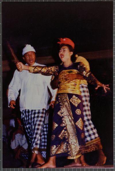 Rangdától megszállva igyekszik a tőrt magába döfni. A templomi őrök támogatják. Gill Marais reprodukció.