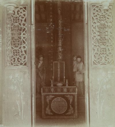 | Jelzés: | A fénykép alatt: Bozóky Dezső kézírása: Canton: Étel és italáldozatok s papírleányok a koporsó előtt a halottak városában. |