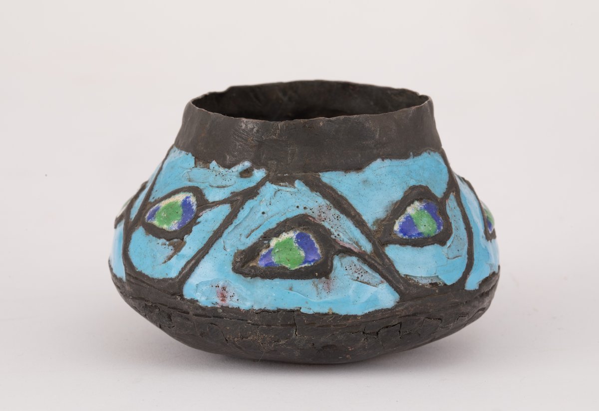 Egyszerű, geometrikus levélminta, türkizkék zománc alapon