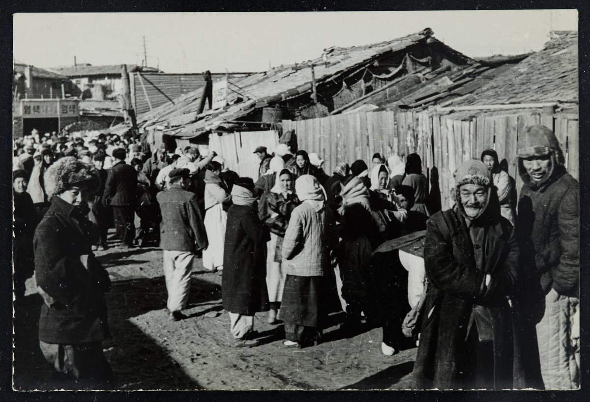 Életkép: A nap fényében sütkérező járókelők, utcarészlet