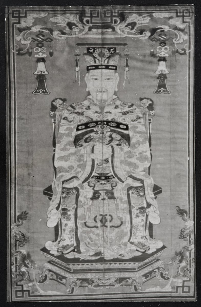 Fekete-fehér fénykép a császár négy mandarinának egyikét ábrázoló selyemfestményről, 19. század elejére datált. A "trón négy oszlopának" vagy "a birodalom négy oszlopának hívták a császár négy főmandarinját. Lé Than Tom templomából (Ninh-binh megye), Hanoi, Történeti Múzeum. Hasonló kép: Patkó Imre - Rév Miklós: Vietnam művészete. Budapest, Corvina Kiadó, 1967. 174. kép