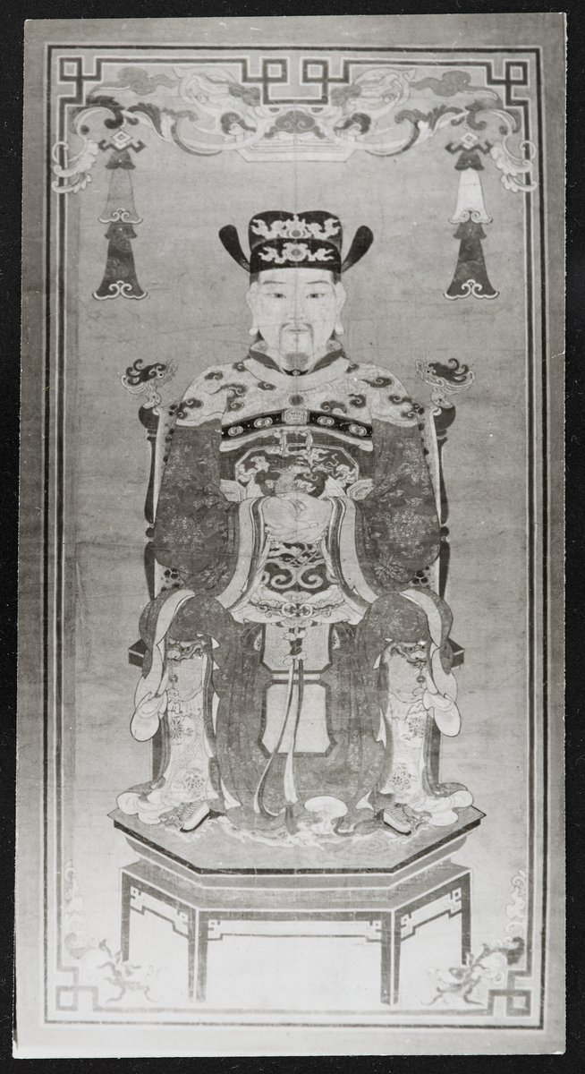 Fekete-fehér fénykép a császár négy mandarinának egyikét ábrázoló selyemfestményről, 19. század elejére datált. A "trón négy oszlopának" vagy "a birodalom négy oszlopának hívták a császár négy főmandarinját. Lé Than Tom templomából (Ninh-binh megye), Hanoi, Történeti Múzeum. Hasonló képek: Patkó Imre - Rév Miklós: Vietnam művészete. Budapest, Corvina Kiadó, 1967. 174-175. kép