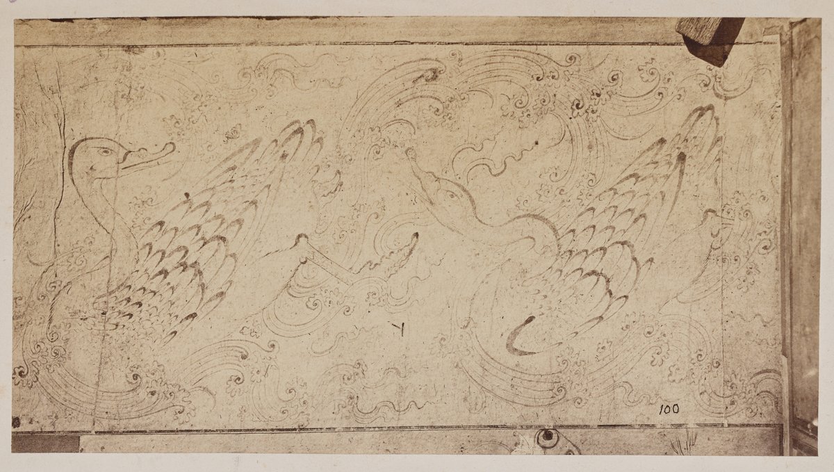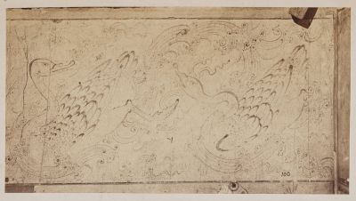 Felkorbácsolt hullámok között úszó hattyúk. Tollrajz a Topkapi Szeráj Múzeum (Topkapı Sarayı) könyvtárából, 15−16. század