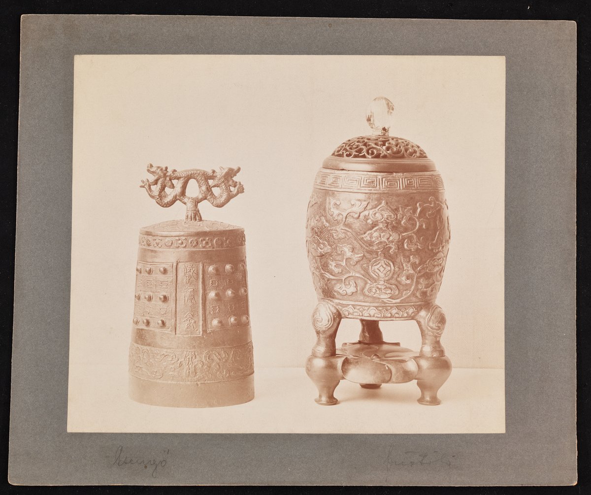 Ismeretlen: Kínai bronz harang és füstölőedény csiszolt kristály gombbal. Készült Radisics Jenő: Képes kalauz a gyűjteményekben 1885. című katalógusához. Franklin Társulat