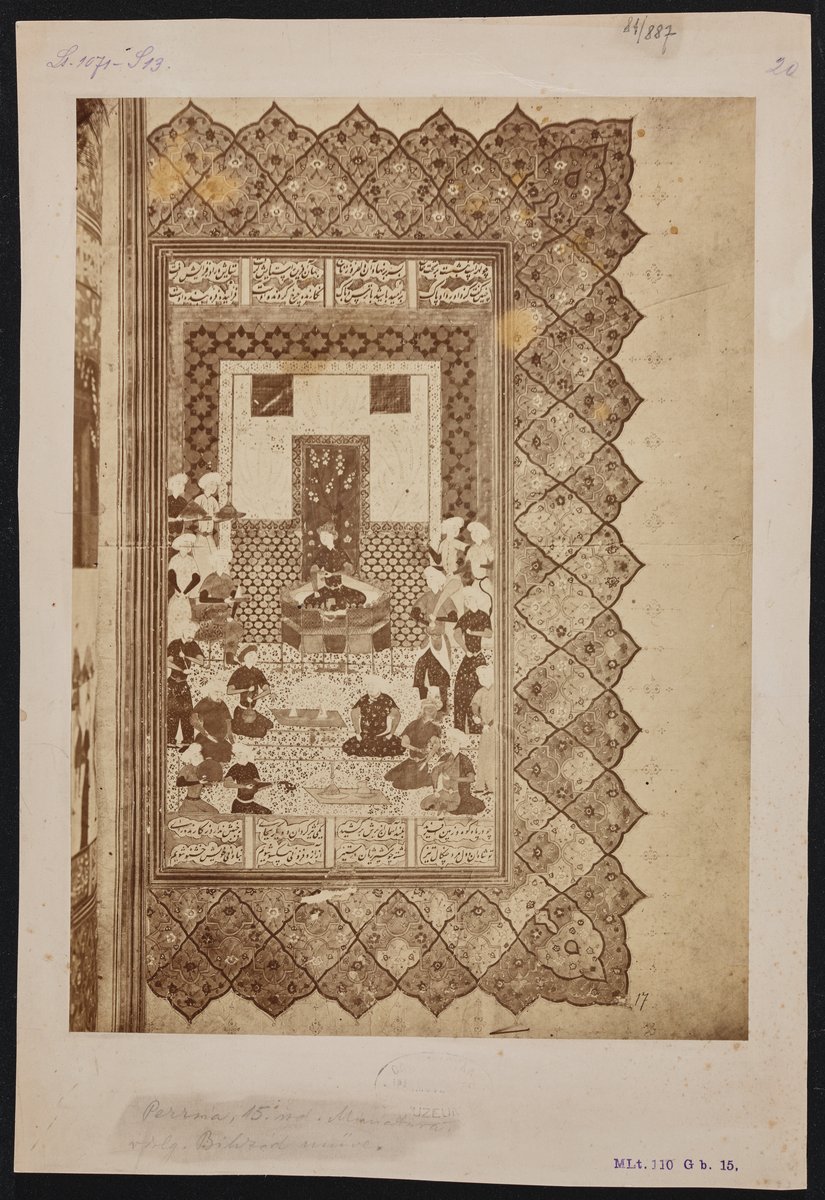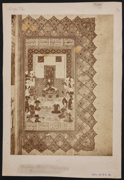 Lohrasp király trónra lépése. Illusztráció Firdauszí (Ferdowsi) Shahnameh című művéhez, albumba foglalva, a Topkapi Szeráj Múzeum (Topkapı Sarayı) könyvtárából, 15. század