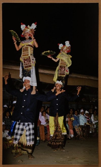 Férfiak elegánhs öltözetben suhannak a lányokkal a vállukon. A transzba esett lányok szeme mindvégig lehunyva marad. Gill Marais reprodukció.