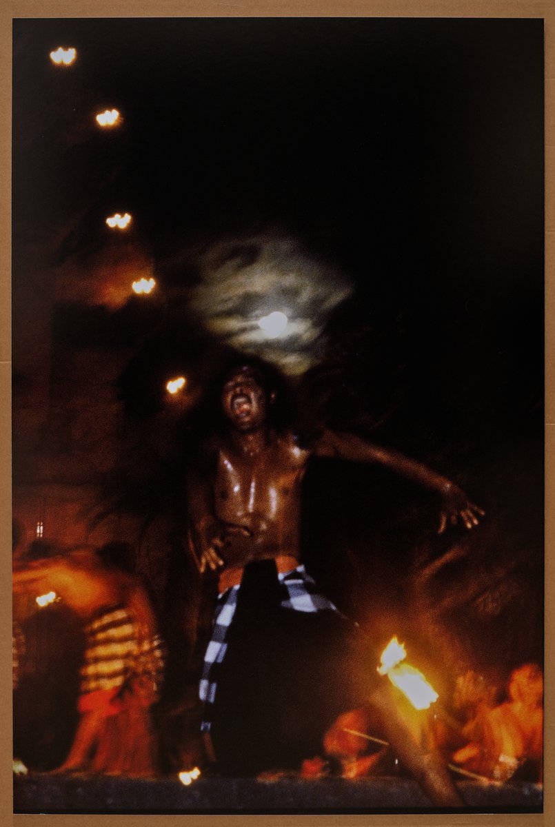 A transz előadás a balinézek tiszteletet és láthatatlan szellemi lények erejébe vetett hitet fejezi ki, valamint az egyensúlyt a Ying és Yang között. Gill Marais reprodukció.