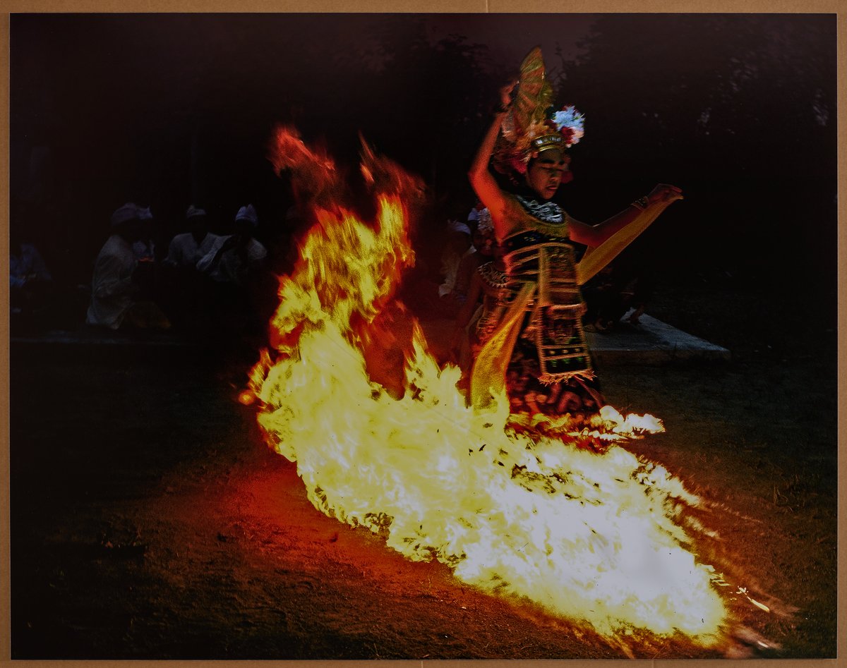 A lány sértetlenül fut át a tűzön. Gill Marais reprodukció.