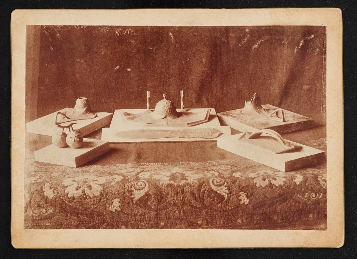 Ismeretlen: írókészlet vadgesztenye termését és leveleit formázó darabokból (nem keleti tárgyak).