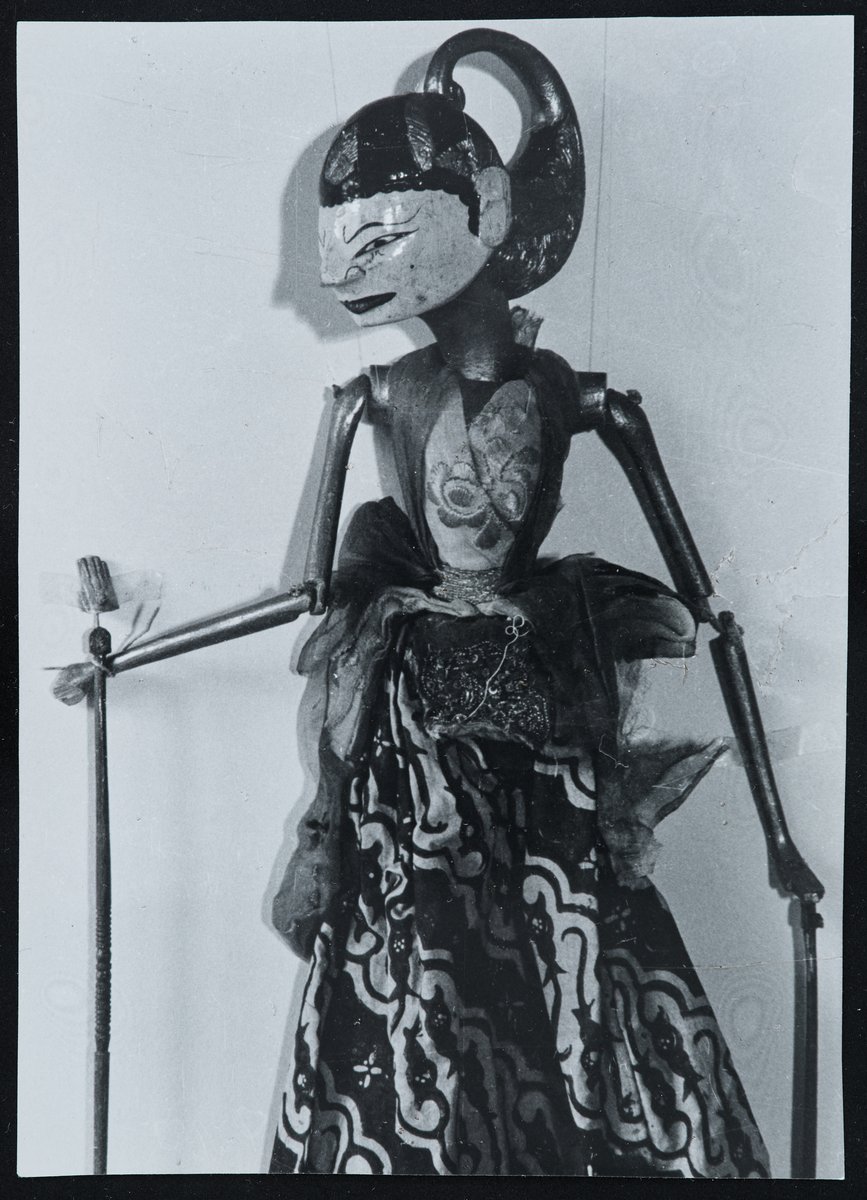 Zboray Ernő gyűjteményéből származó wayang golek előkelő figurájáról (ltsz. 66.23) készült fotó restaurálás közben. A fotó a restaurálás előtti állapotot mutatja, a báb letörött jobb kézfejével.