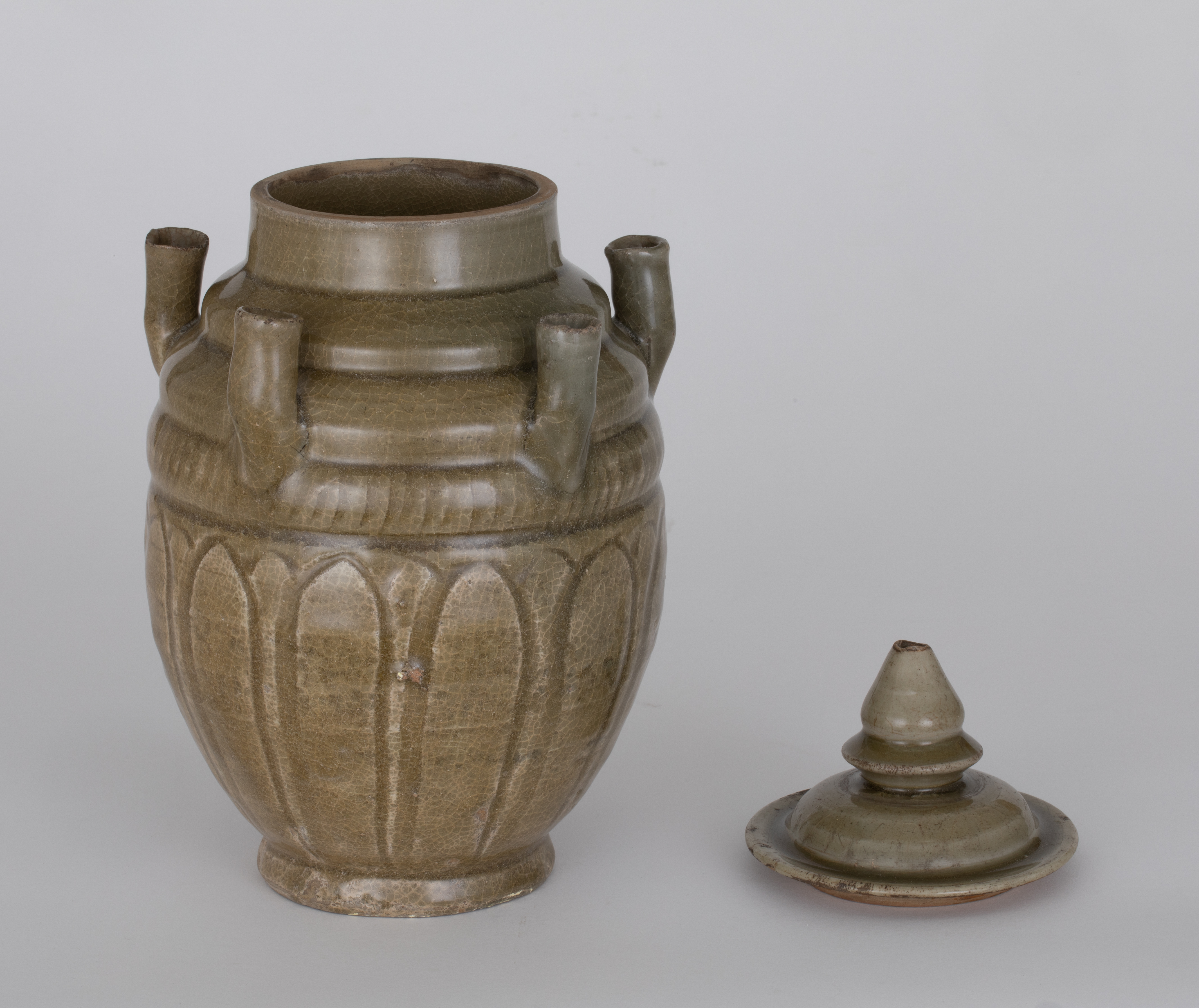váza magassága: 20,6 cm, szélessége: 16 cm, száj átmérője: 9 cm; fedél magassága: 7 cm, átmérője: 10,3 cm