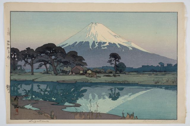 Signature: Yoshida and stamp, signed with jizuri (own printing) stamp in the left margin, signed in Latin characters in pencil in the lower margin: Hiroshi Yoshida, dated 1935